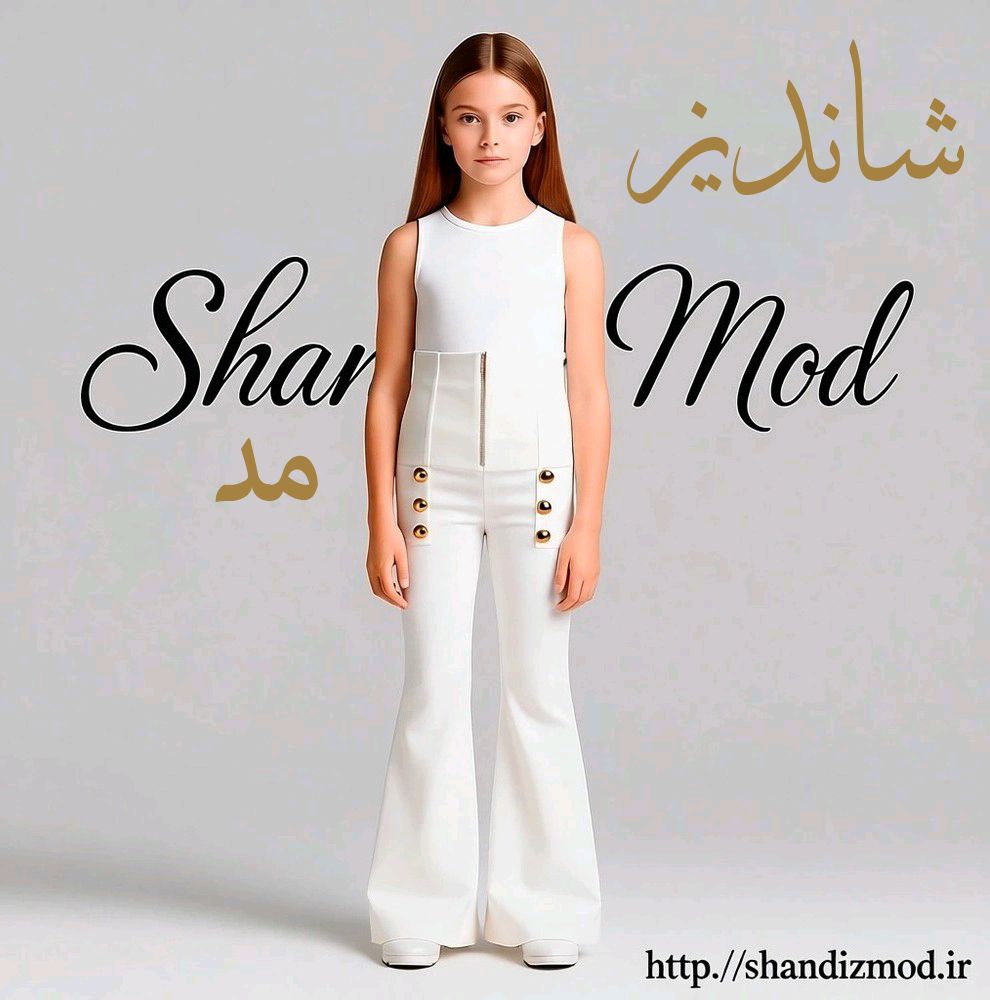 شلوار دخترانه دم پا گشاد مدل کمرگن بوت کات رنگ سفید