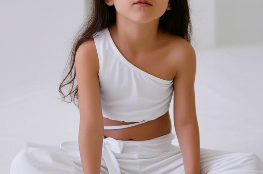 نیم تنه دخترانه مدل پاپیونی از بغل رنگ سفید