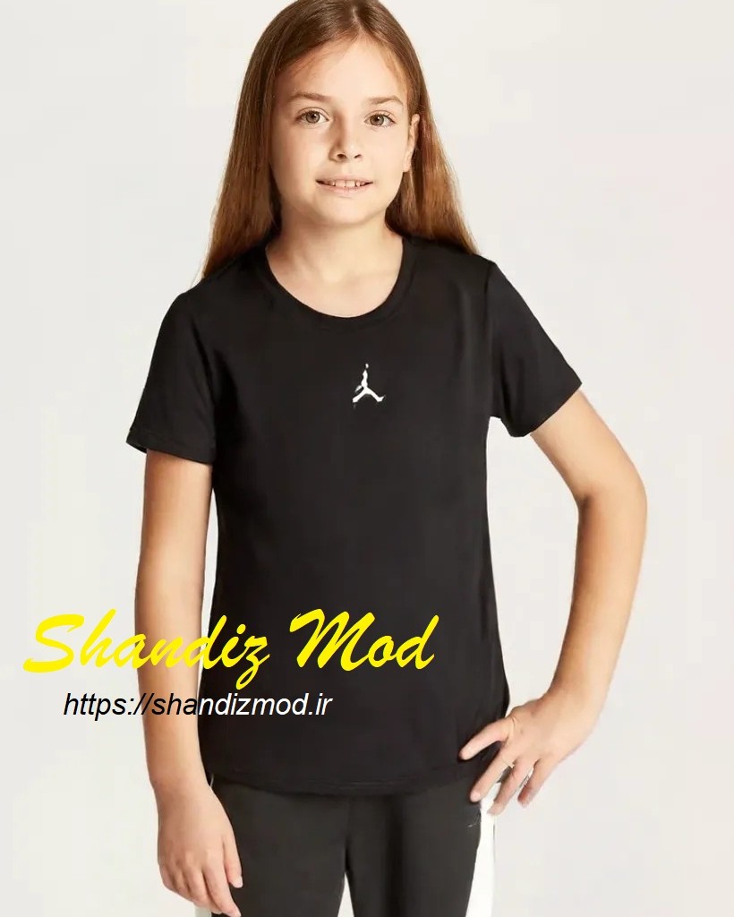 تیشرت ورزشی دخترانه طرح JORD — مشکی. همراهِ راحتی و کارآیی در هر حرکت.