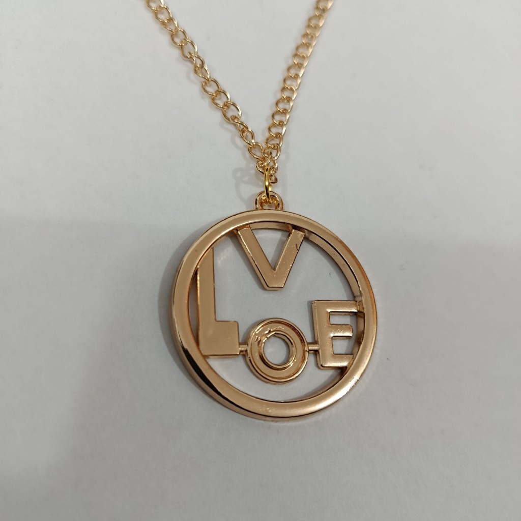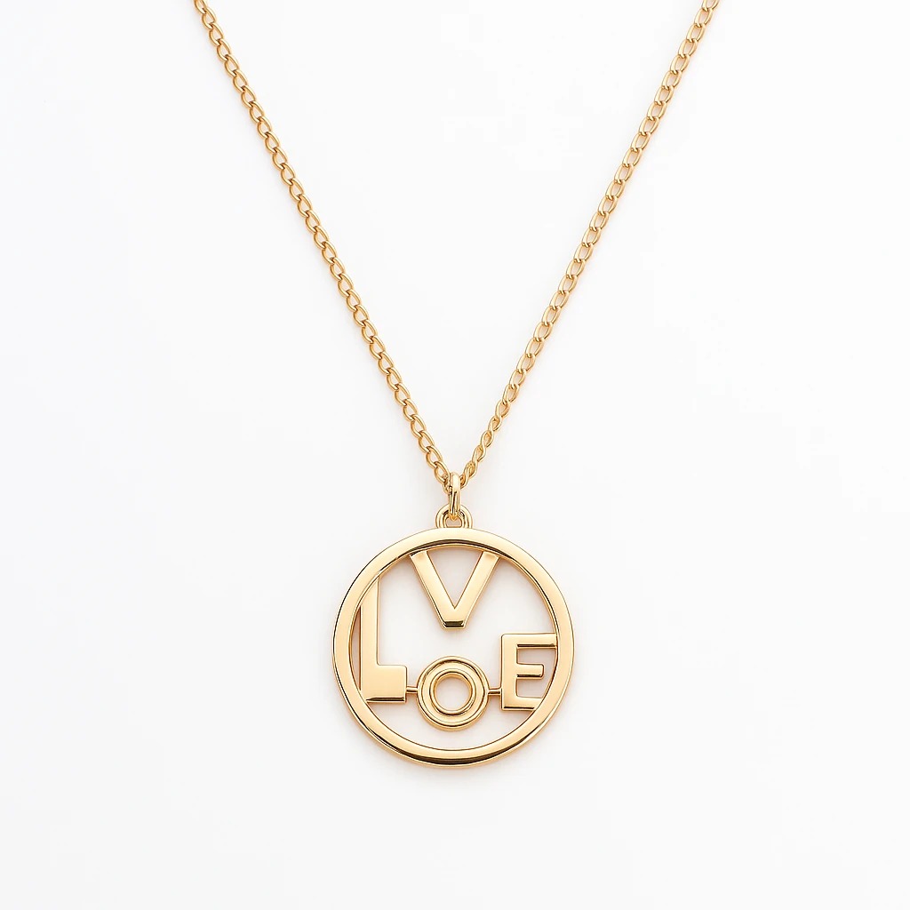 گردنبند زنانه طرح LOVE دایرهای رنگ طلایی – مدل مدرن و مینیمال
