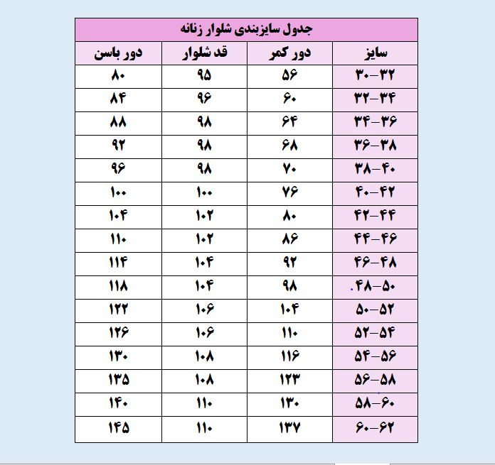 در هنگام انتخاب سایز حتما به جدول اندازه ها در تصاویر این محصول توجه فرمائید