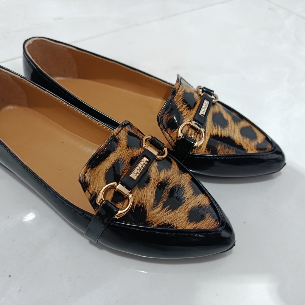 اگر بهدنبال یک کفش شیک و متفاوت برای استایل مهمانی و مراسم هستید، این مدل لوفر زنانه با ترکیب جذاب چرم براق مشکی و رویه طرح پلنگی یک انتخاب کاملاً لوکس و چشمگیر است. قسمت پلنگی رویه علاوه بر زیبایی بصری، جلوهای مدرن و فشن به کفش میدهد و استفاده از یراق طلایی بر روی بند تزئینی، ظاهر آن را حرفهایتر و مجلسیتر کرده است.