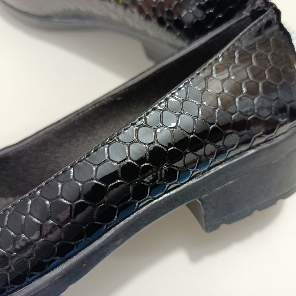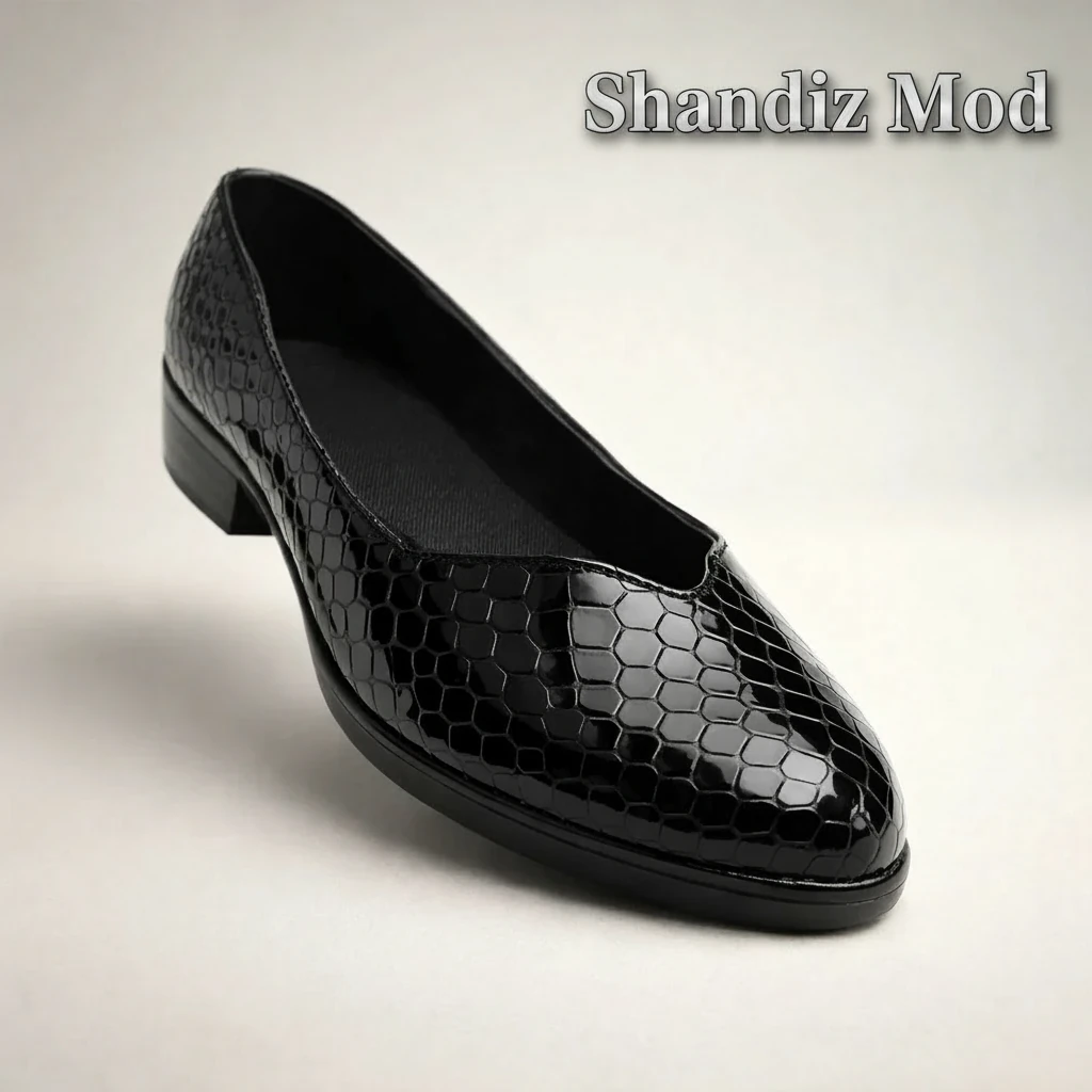 این کفش زنانه با رویهی براق و بافت شیک پوست ماری، انتخابی بینظیر برای خانمهایی است که به دنبال استایلی خاص و منحصربهفرد هستند. الگو و طرح پوست مار درخشش خاصی به کفش داده و با انعکاس نور در بافت ششضلعی، جلوهای لوکس و مدرن ایجاد میکند.اگر به دنبال کفشی هستید که هم در محیط کار شیک و رسمی به نظر برسد و هم برای مهمانیها و دورهمیها مناسب باشد، این مدل یک گزینه تمام عیار است. پاشنه کوتاه کفش، باعث میشود پا در طول ساعتها استفاده احساس خستگی نکند و زیرهی سبک، قدم برداشتن را راحت میکند.طراحی این کفش بهگونهایست که میتواند بهراحتی با شلوار پارچهای، مانتو کلاسیک، شلوار جین جذب و حتی دامن ست شود. پس اگر به دنبال ترکیب راحتی و استایل مجلسی هستید، حتماً این مدل را در لیست خرید کفشهای روزمره و خاص خود قرار بدهید.