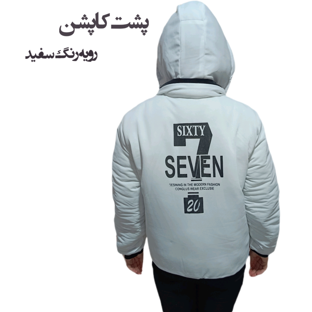 کاپشن دو رو طرح سون ، یک گزینه عالی و بسیار شیک ، ویژه جوان هایی که به دنبال استایل اسپرتی هستند ، می باشد . این کاپشن بصورت دو رو بوده و رویه اصلی آن رنگ مشکی و رویه دوم آن رنگ سفید می باشد و می توان طبق سلیقه از هر دو روی آن(با برعکس کردن کاپشن) استفاده نمود .استایل این کاپشن فیت بوده و این محصول اصلا مناسب افراد چاق و درشت هیکل نمی باشد . در پائین کاپش کش مشکی با خطوط سفید به کار گرفته شده است که علاوه بر افزودن به زیبایی این کاپشن باعث ایجاد کشسانی شدن این کاپشن و گرفتن حالت مناسب در هنگام پوشیدن می کند.از مزایای دیگ این کاپشن داشتن کلاه می باشد که در هوای بارانی و یا سرد از سر و گوشها محافظت می کند .