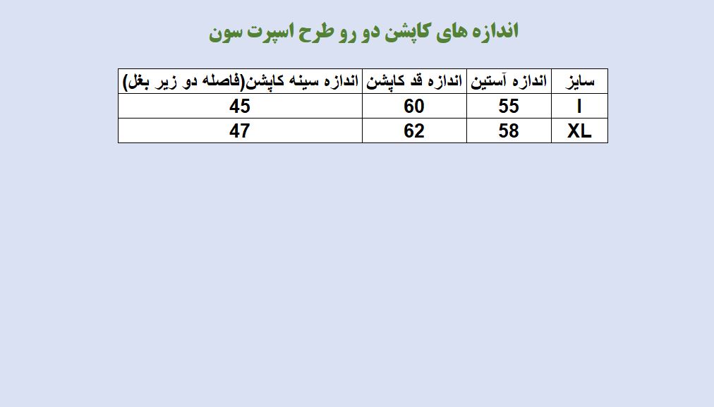 - مورد استفاده: روزمره، اسپرت، فصول معتدل(بهار و پائیز)
