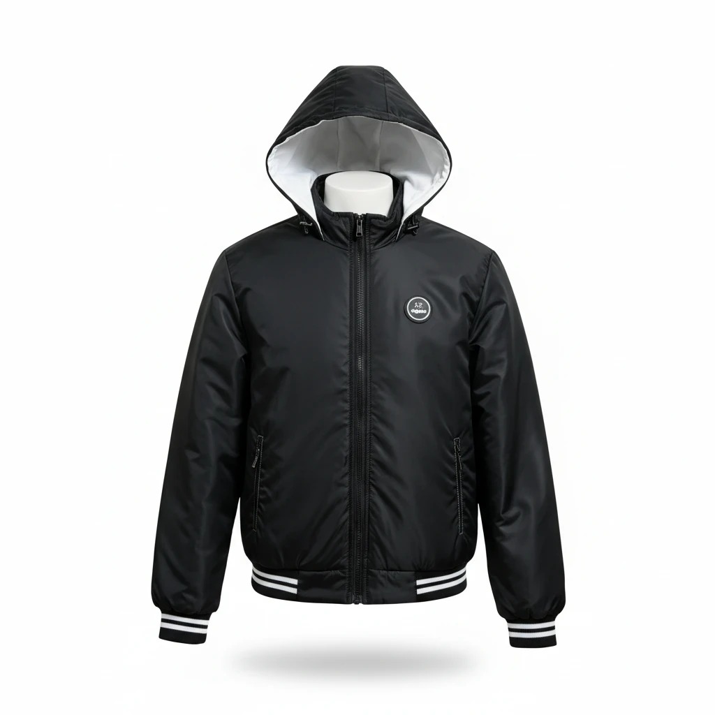 همچنین وجود یک لوگوی مینیمال و شیک روی سینه سمت چپ در رویه تیره، جلوهای رسمیتر به لباس بخشیده است. کلاه متصل به کاپشن نیز از همان متریال بدنه تهیه شده و پوشش کاملی برای سر و گردن در برابر باد و باران ایجاد میکند.کلاه قابلیت جدا شدن از کاپشن را دارد