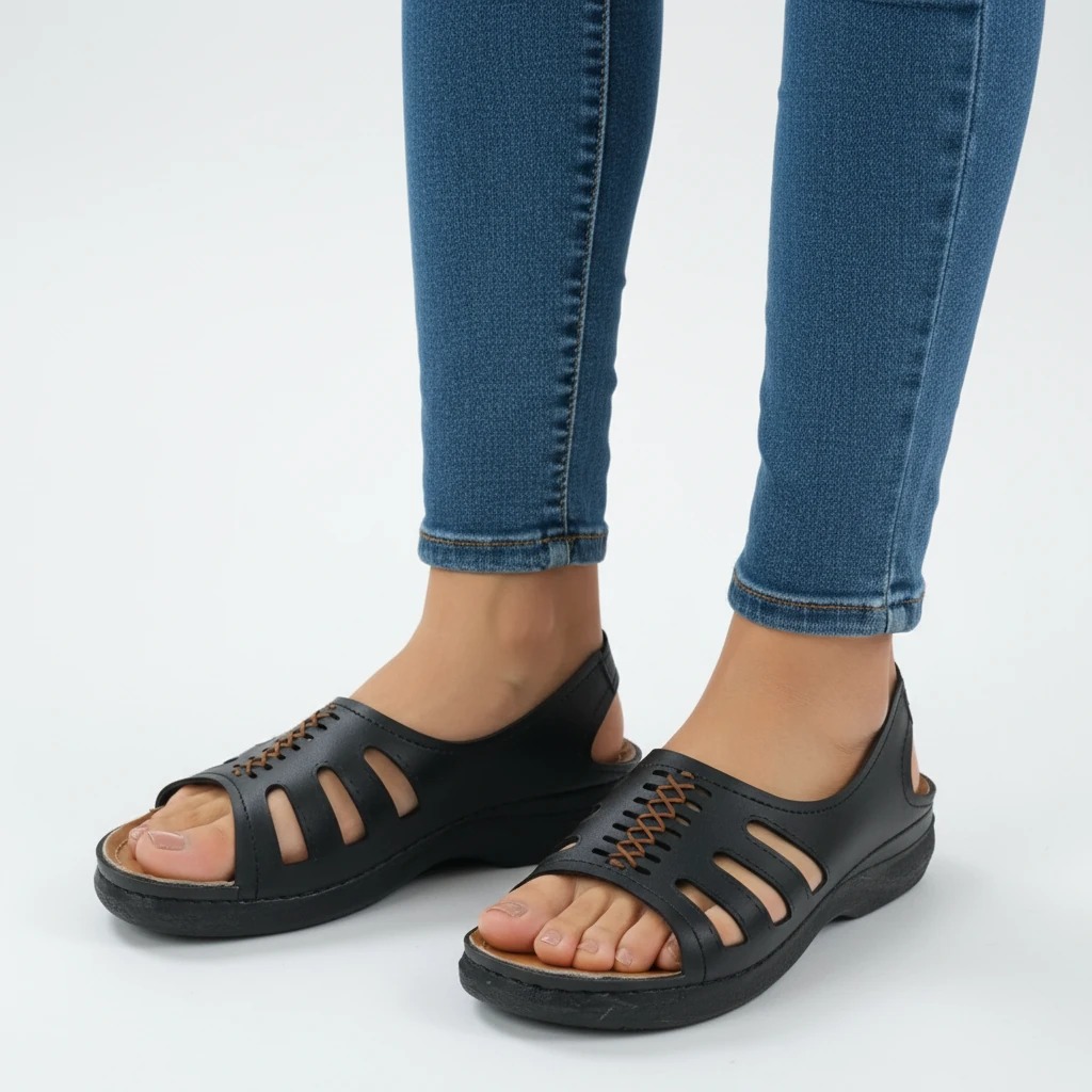 - استایل کژوال و کاربردی: رنگ مشکی این صندل باعث میشود به راحتی با انواع شلوار جین، کتان، دامن و استایلهای خیابانی ست شود.